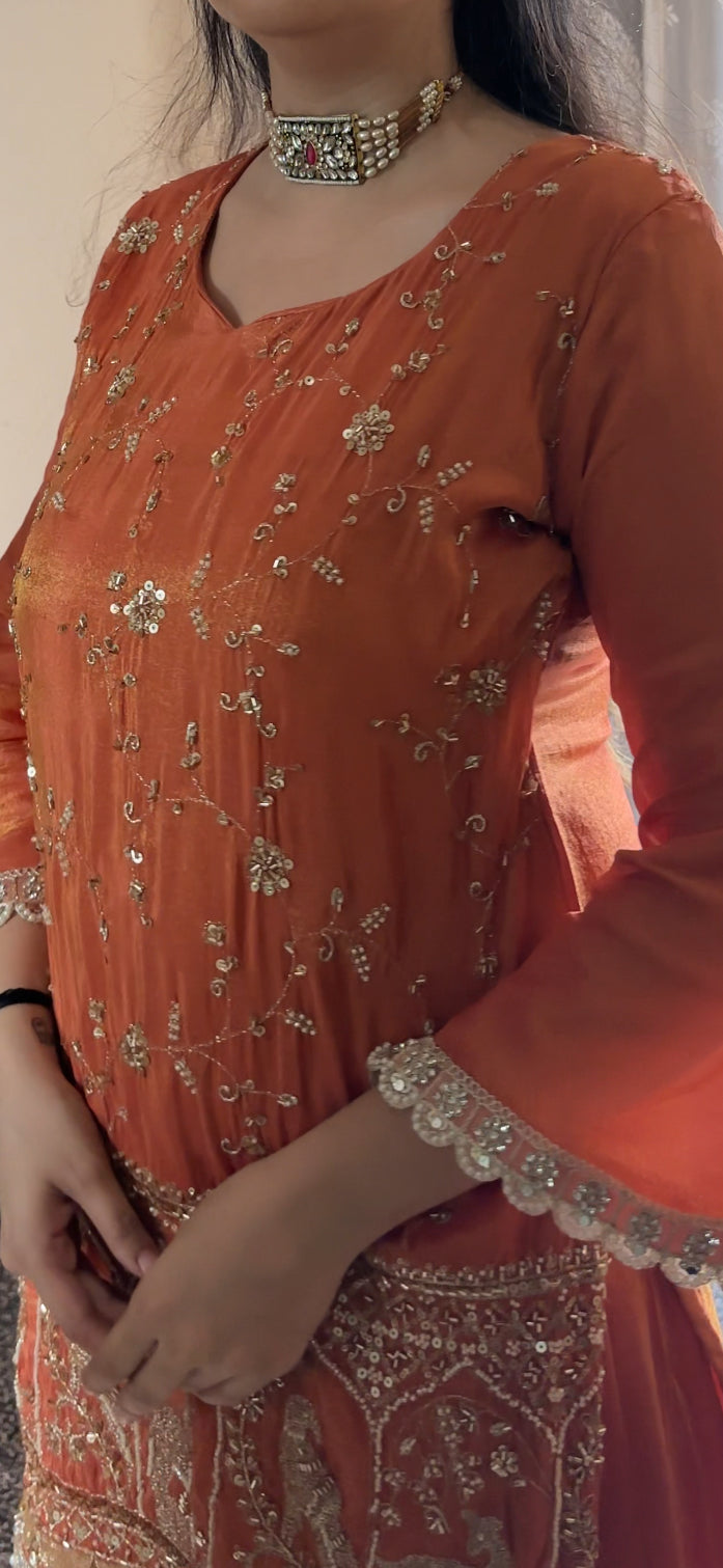 “THE SHARARA COORD SET” made on pure tissue fabric with handwork allover.